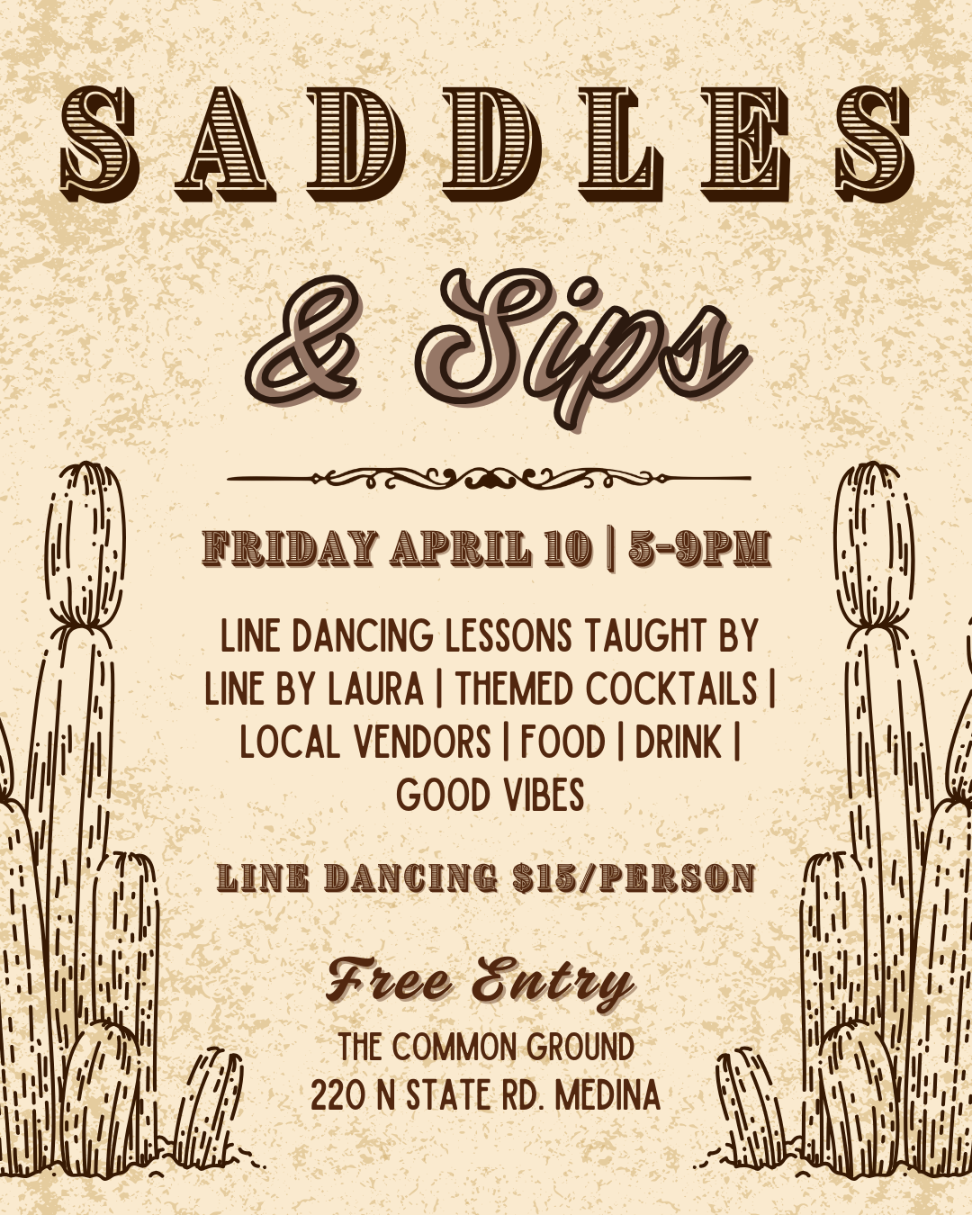 Dust off your boots and grab a drink! Saddles & Sips is taking over The Common Ground for a western inspired night of dancing, cocktails & good vibes.