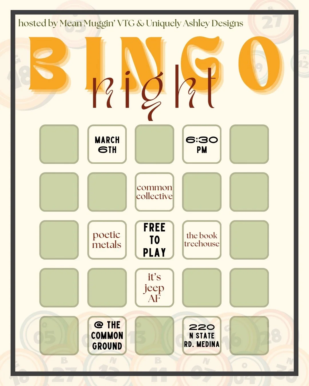 Join us for an evening of FREE bingo fun.