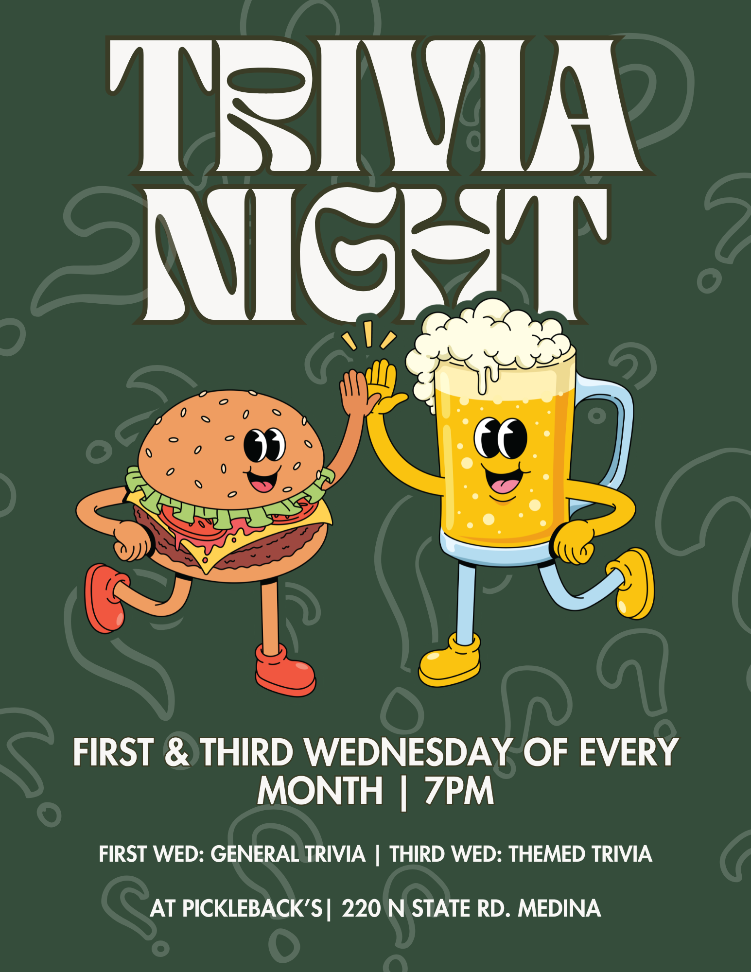 Every 1st & 3rd Wednesday of the month join us at our warehouse bar, Pickleback’s, for trivia night!